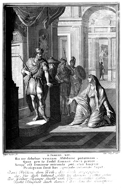 - 압살롬의 암논 살인 사건이 있은 지 3년이 지났습니다. 다윗 왕의 마음에 암논으로 인한 슬픔도 점점 사라지기 시작했고, 다윗의 마음은 압살롬을 향해 가고 있었습니다. 복잡한 마음이 들었을 겁니다. 그래도 내 자식이니 보고싶은 마음, 괘씸한 마음, 3년 전 형 암논이 비참하게 살해당한 그 원인을 알고 싶었습니다. 그 때에 이러한 다윗의 마음을 나름대로 간파한 사람이 있습니다. 바로 스루야의 아들 요압입니다. 요압은 드고아의 슬기로운 한 여인을 불러내어 다윗 앞에서 억울하게 형제간의 난으로 죽은 아들의 어머니인척 연기를 하게 했습니다. 그러면서 백성들에게는 복수하지 말라고 하면서 압살롬을 용서하지 않는 다윗의 모습을 지적합니다. 하나님의 이름까지도 들먹이면서 하나님 아버지께서도 압살롬을 살려주셨으니 이제는 압살롬을 용서하고 받아주게 해달라고 부탁을 합니다. (삼하 14:4~17)