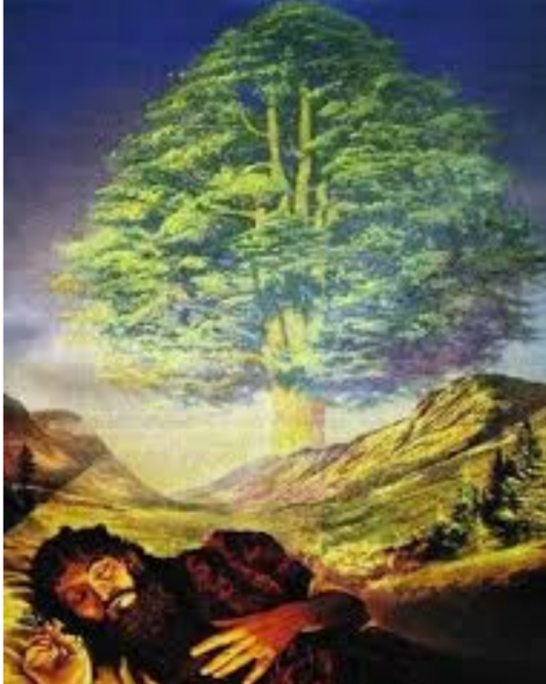 - 그러나 우리가 2장에서 보았던 것처럼 느부갓네살이 잠 못 들정도로 수상했던 꿈 앞에 바벨론의 점쟁이들과 온갖 점성사들이 총동원되어서 해결한다고 한들 무슨 소용이 있습니까? 아무 소용이 없었습니다. 이 꿈을 해결해줄 수 있는 영적인 열쇠를 가질 수 있는 유일한 단 한 사람, 거룩하신 하나님의 영을 받은 사람 다니엘이었습니다. 느부갓네살 앞에 선 다니엘은 느부갓네살의 꿈을 막힘없이 이야기합니다. 바로 꿈 속에 땅 한 가운데에 큰 나무가 있었는데 어느 날 하늘에서 내려온 거룩한 순찰자가 소리를 지르며 '이 나무를 베고 가지를 자르고 잎사귀를 떨어뜨리고 열메를 헤치고 그 나무 아래에 있던 짐승들을 쫓아내고 붙어있던 새들을 떨어뜨리라!' 라고 명령하자 그 나무는 그루터기만 남은채 베여져 쇠와 놋줄로 동여진 채 무려 7년간 버림을 당하게 된다는 꿈이었습니다. (단 4:10~16)