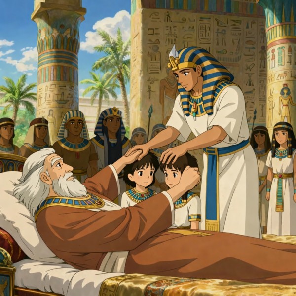 1.이 일 후에 어떤 사람이 요셉에게 말하기를 네 아버지가 병들었다 하므로 그가 곧 두 아들 므낫세와 에브라임과 함께 이르니